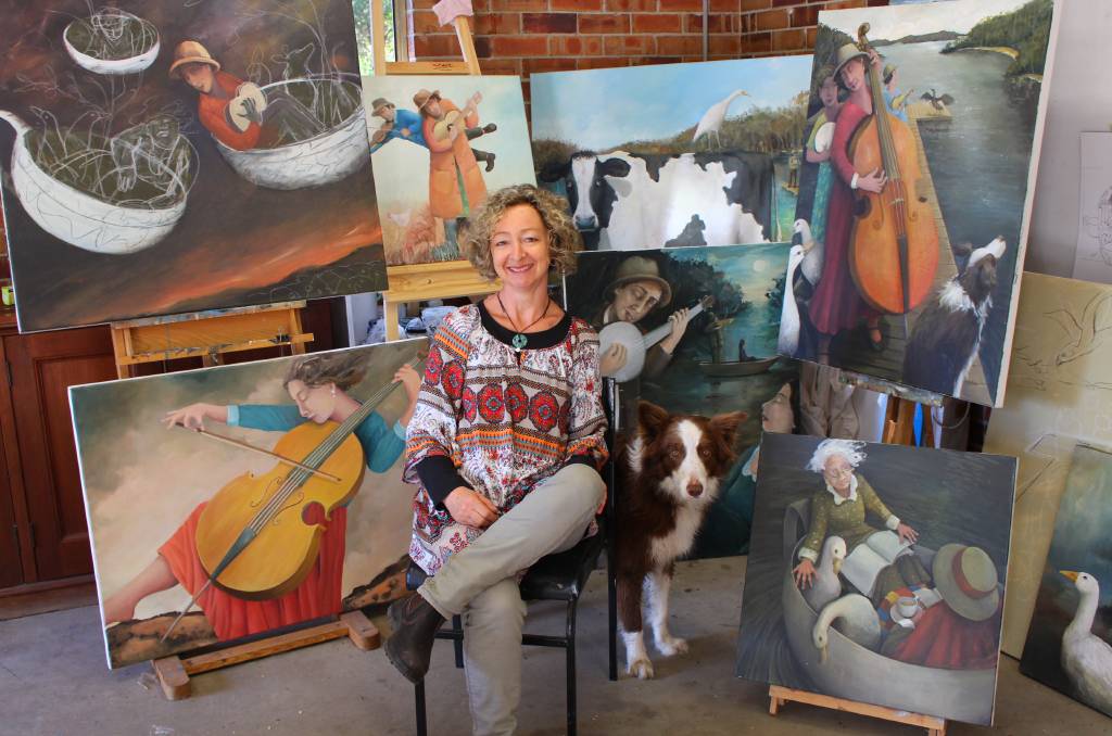 The Conjola Park artist held her first solo exhibition at a regional art gallery in the Southern Highlands and her 30 works featured some of her musical companions, the nearby waterway and its inhabitants, as well as her faithful Border Collie Flynn.
